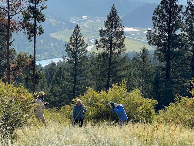 An interesting side story: Our two oldest volunteers are also avid cyclists. Our leader, Phil (below, on the right), who is 80, bikes thousands of miles a year on Colorado Springs' hilly terrain. This is his 13th time acting as crew leader. Chuck, who is 76, bikes his fat tire mountain bike 2000+ miles a year on the smaller, glaciated hills on the Illinois/Wisconsin border. This was his 36th volunteer program.